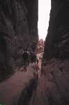 Went to get meths for the Trangias (which would have been impossible without Gareth's advice to buy "denatured alcohol" from a hardware store). Goat stew for lunch at Filipino restaurant. Long drive to Zion National Park. Cruise control and air conditioning are not luxuries. Hot evening walk to Emerald Pools (which were a bit dried up). Hammered tent pegs into the baked earth of Watchman Campground. Day 3 - "The River is the Trail" Spectacular scenic drive up Zion canyon to Temple of Sinawava. Waded up the Zion Narrows, until it became groin deep. View points of Great White Throne and Weeping Rock, followed by trail to Canyon Overlook. Started raining. |