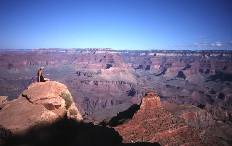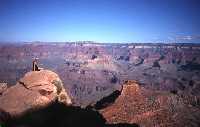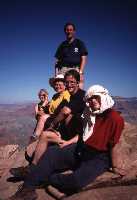 Another long drive. Visited Monument Valley (famous from Marlboro ads). Indians offered an hour's sightseeing on bumpy tracks for $25. We declined. On to Grand Canyon South Rim, navigational negligence taking us an extra hundred miles. Arrived just in time for amazing sunset. Camped at Grand Canyon Camper Village (park campground full). Day 13 - "Carry on up the Colorado" Back to Canyon rim to watch sunrise. Perfect visibility. Hiked part of the South Kaibab Trail down into the Canyon to Ooh-Aah Point and Cedar Ridge. Bus to Hermits Rest and walked back on Rim Trail to Hopi Point for sunset. Brill. Day 14 Long drive back to Las Vegas, stopping for sightseeing tour of Hoover Dam. Evening stroll down The Strip, too tired to enjoy it, except Trudi who declined a hotel room in favour of spending the night in the Golden Gate Casino. Day 15 5 am farewell to Debs at the airport. Delayed at Phoenix awaiting trivial component for the plane, caught connection at Boston with seconds to spare. Nigel said he'd eat his Grand Canyon souvenir hat if our luggage made it as well, which it did. Bon appetit. Day 16 - "Home Sweet Home" Sunrise over Gatwick at bed time. |