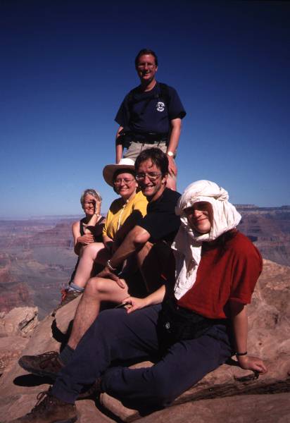 Another long drive. Visited Monument Valley (famous from Marlboro ads). Indians offered an hour's sightseeing on bumpy tracks for $25. We declined. On to Grand Canyon South Rim, navigational negligence taking us an extra hundred miles. Arrived just in time for amazing sunset. Camped at Grand Canyon Camper Village (park campground full). Day 13 - "Carry on up the Colorado" Back to Canyon rim to watch sunrise. Perfect visibility. Hiked part of the South Kaibab Trail down into the Canyon to Ooh-Aah Point and Cedar Ridge. Bus to Hermits Rest and walked back on Rim Trail to Hopi Point for sunset. Brill. Day 14 Long drive back to Las Vegas, stopping for sightseeing tour of Hoover Dam. Evening stroll down The Strip, too tired to enjoy it, except Trudi who declined a hotel room in favour of spending the night in the Golden Gate Casino. Day 15 5 am farewell to Debs at the airport. Delayed at Phoenix awaiting trivial component for the plane, caught connection at Boston with seconds to spare. Nigel said he'd eat his Grand Canyon souvenir hat if our luggage made it as well, which it did. Bon appetit. Day 16 - "Home Sweet Home" Sunrise over Gatwick at bed time. |